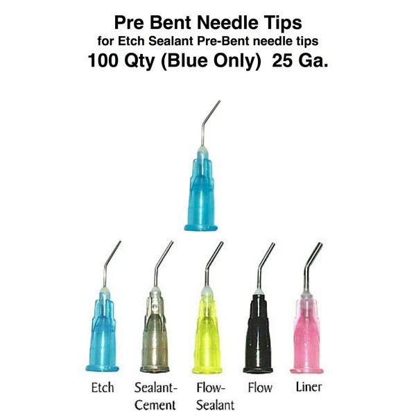 Dental Pre Bent Needle Tips 25 Ga./Blue, Etch