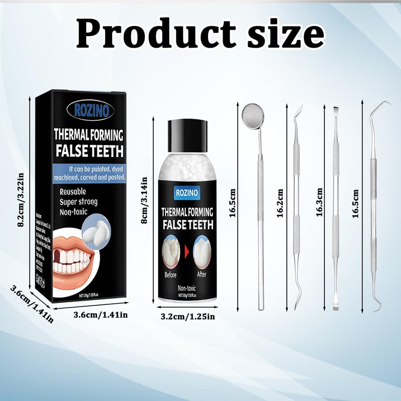 - Easy to use: simply remove dentures yourself in hot water and apply it to your teeth. After cooling, it sticks firmly to your teeth and gives them a more beautiful smile. No matter when and where, tooth repair kit can help you cope with different occasions.
