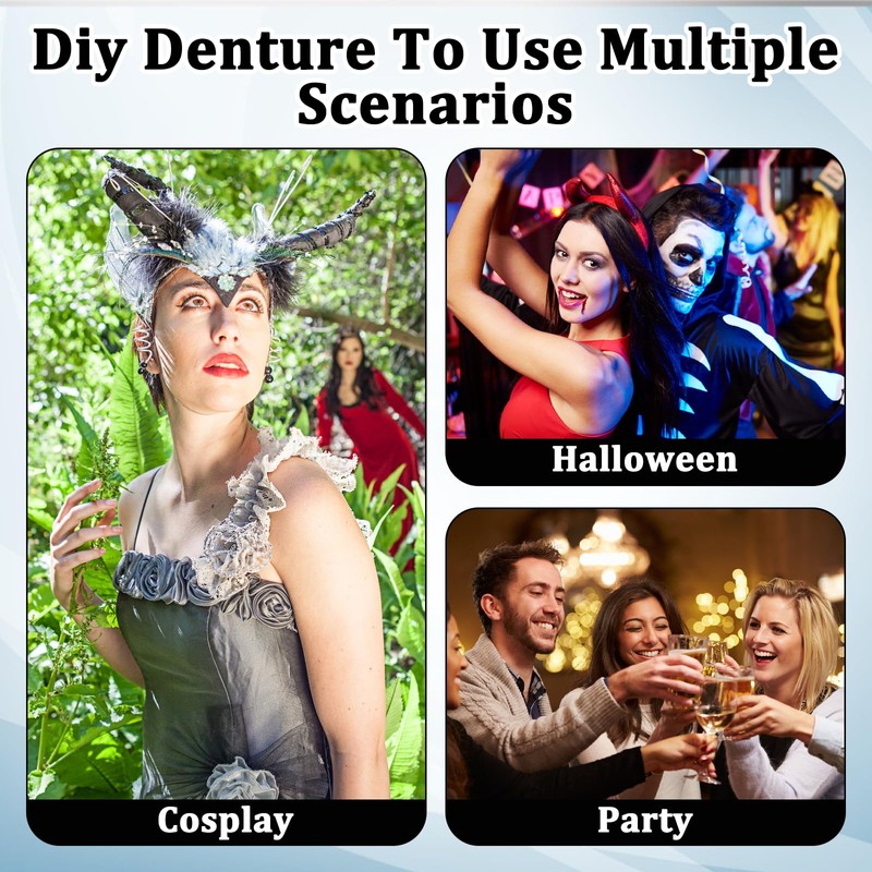 - Adapts to multiple scenarios: Our dentures do it yourself is not only an ideal choice for teeth whitening, but also a perfect helper for make-up fans. Whether carnival, Halloween or cosplay event, tooth repair kit can give your outfit a touch of colour. Let your creativity run wild and show your artistic charm.