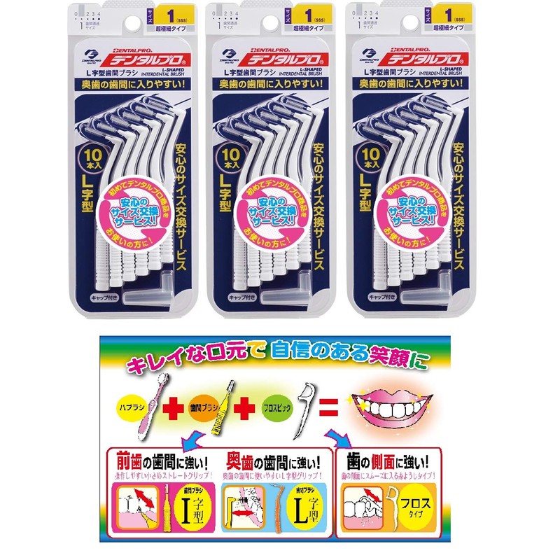 DENTALPRO Interdental Brush L Shape 10 Pack Size 1 3 Pack + Leaflet