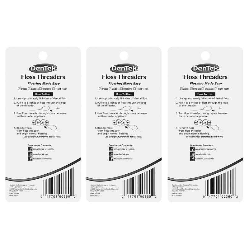• DenTek Floss Threaders make flossing around braces and dental work a breeze.