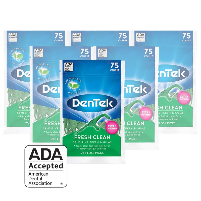 DenTek Fresh Clean Floss Picks | Silky Comfort Floss | 75 Count | 6 Pack