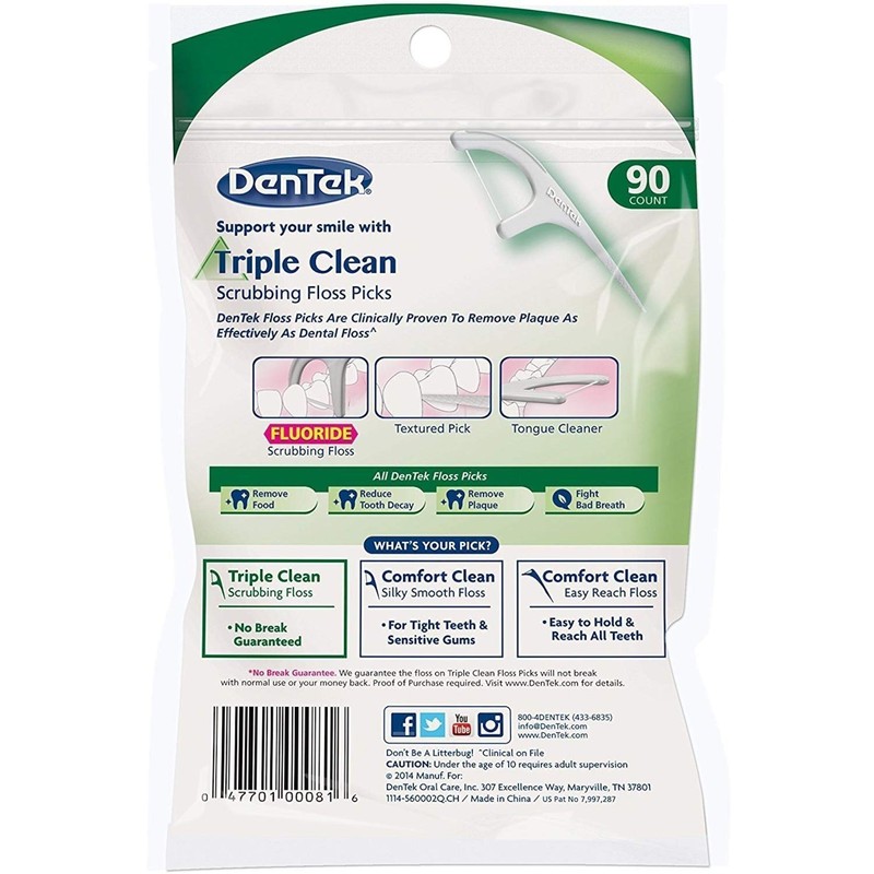 DenTek Triple Clean Fresh Mint Scrubbing Floss Picks - 90 CT