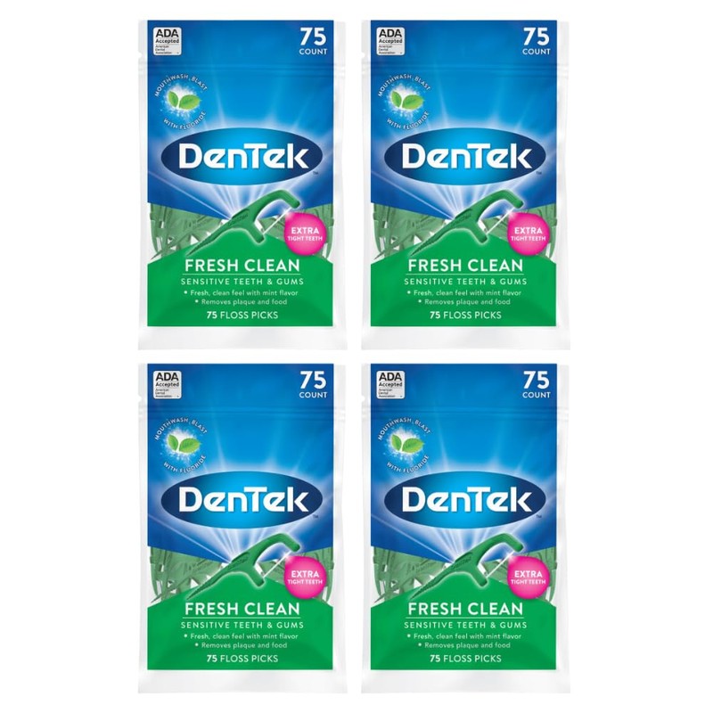 DenTek Fresh Clean Floss Picks, for Extra Tight Teeth, 75 Count, (Pack of 4)