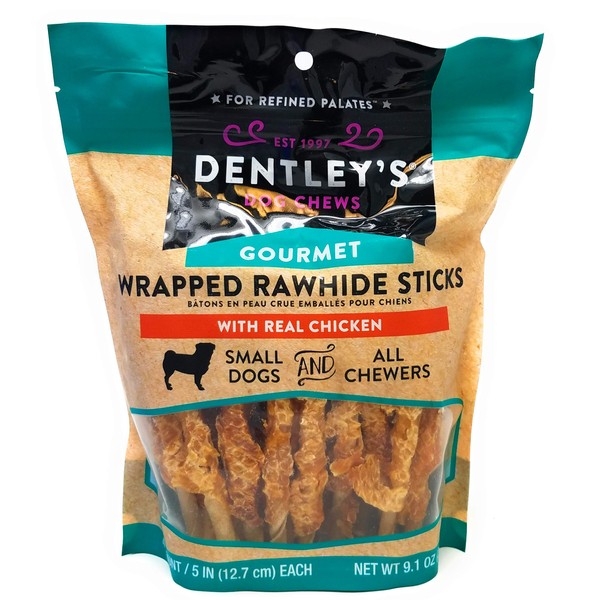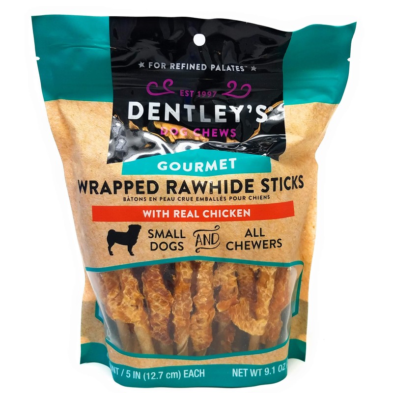 Dentley's Gourmet Wrapped Rawhide Sticks Dog Treats - Chicken 40 Count Per Pack