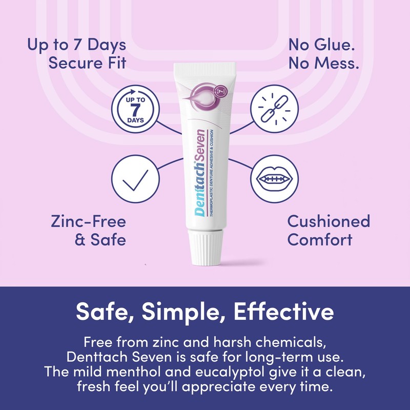 Denttach Seven Denture Adhesive, Thermoplastic Denture Cushion and Reliner, Upper and Lower Denture Comfort for Up to 7 Days, Zero Glue, Zinc Free (2)