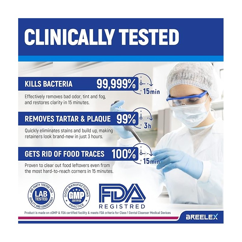 - Prolonged Retainer Longevity: Breelex dental cleaner tablets rejuvenate and restore the clarity of your dental appliances by removing discoloration. As reliable mouth guard cleaner and nightguard cleaner tablets, these dental cleaning tablets ensure your retainers remain clean and bright for prolonged use