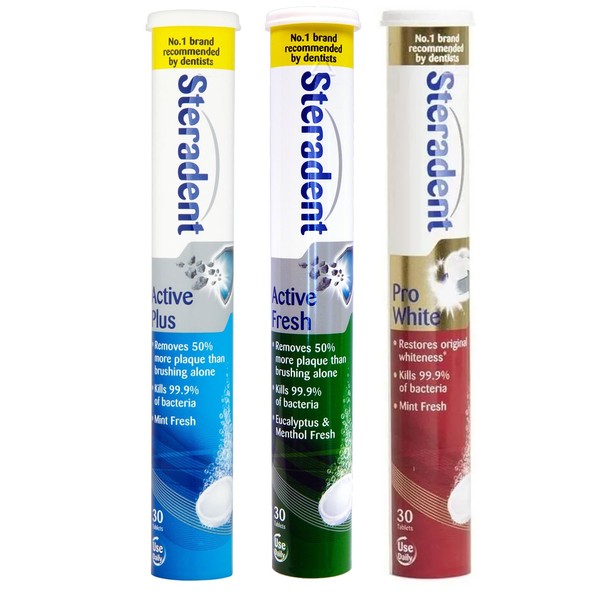 Denture Cleaning Tablets – Active Plus, Active Fresh & Pro White – Deep Clean, Removes Stains, Freshens, Daily Use – 90 Tablets (3 x 30)