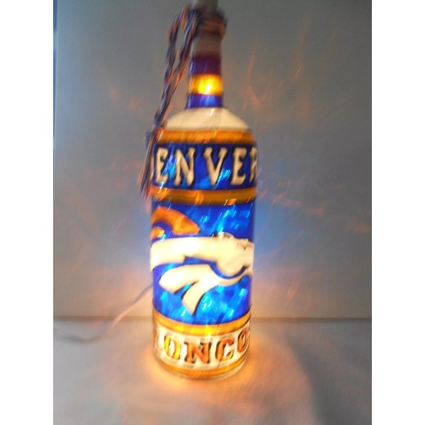 Denver Broncos Inspired Bottle Lamp Hand painted Lighted Stained Glass Look