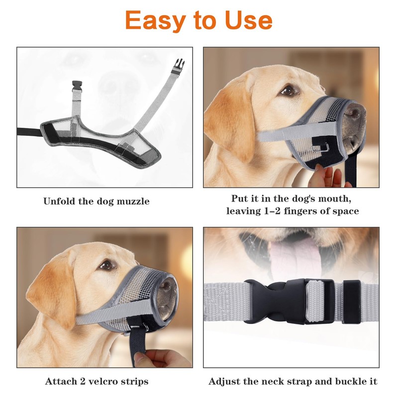- 【Usage Tips】When you put a dog mouth guard on your dog for the first time, please guide it slowly and give it treats as a reward to help it overcome its anxiety and get used to wearing it. If you have any questions about the muzzle, we can answer your questions 24 hours a day.
