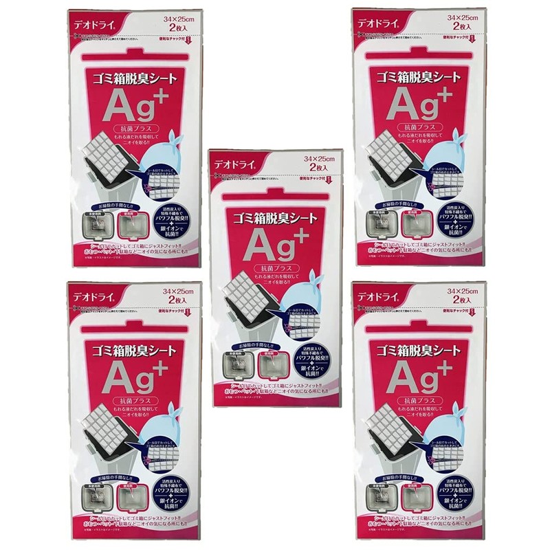 Deo-Dry Trash Can Deodorizer Sheet Ag+ 2 Piece Antibacterial Plus [Set of 5]