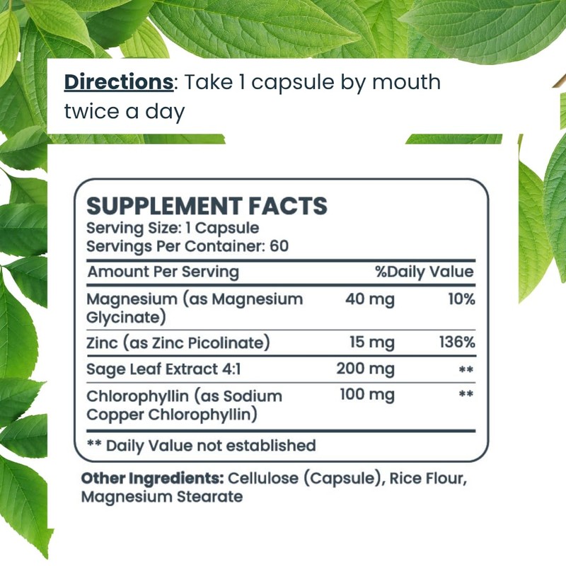 - REDUCES SWEATING NATURALLY – Sage has gentle anticholinergic properties, which helps these body deodorizing capsules keep you fresh and dry.