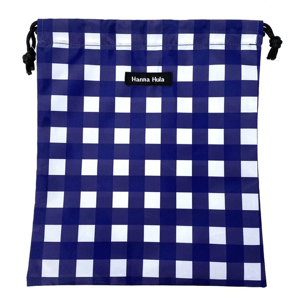 Deodorizing Drawstring Bag, Medium, Antibacterial, Gingham Navy
