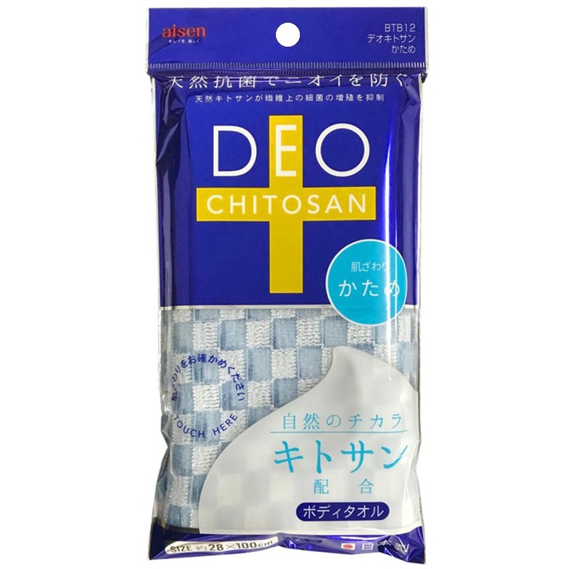 - Natural Chitosan Blend Towel Chitosan inhibits the growth of bacteria on the fibers and has an antibacterial and deodorizing function that shows its odor resistance. A type that can be washed with a pleasant stimulation for your skin. Easy to rinse and hygienic with good foaming and lathering and draining