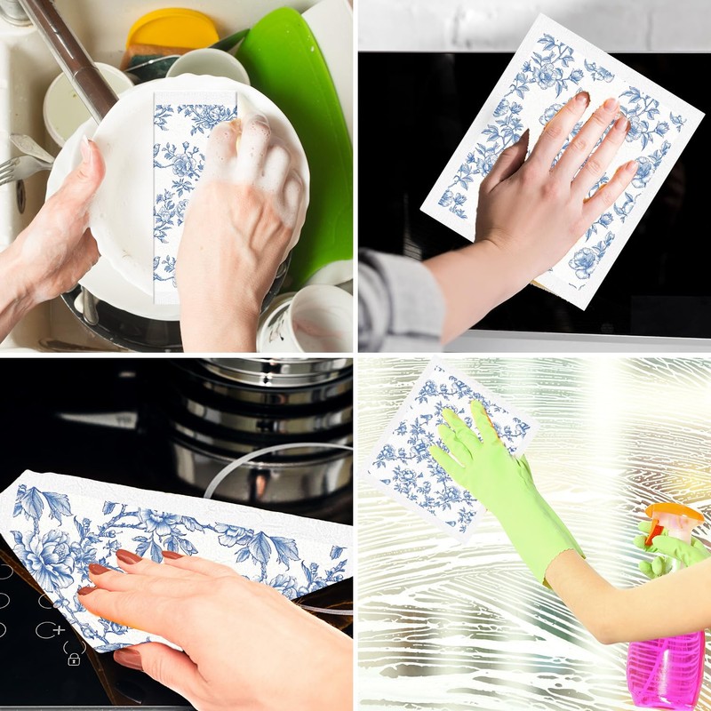 - What You’ll Receive: A set of 6 Swedish dishcloths featuring classic Chinese style-inspired blue-and-white floral patterns. Made from a blend of cotton and wood pulp, these reusable cloths combine elegant design with practical cleaning power for kitchens, countertops, and daily chores