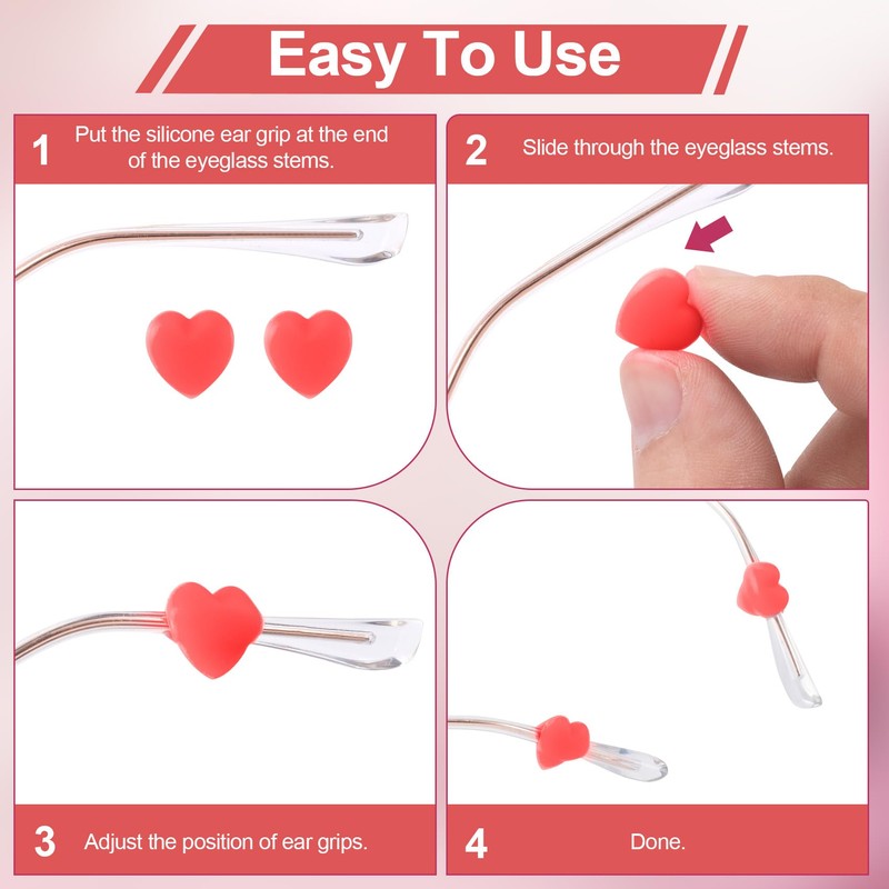 - Easy Setup & Use: These heart eyeglasses ear clips can be easily slid on and off your glasses. You can wash them and reuse them, and they offer reliable performance for your daily glasses wearing needs