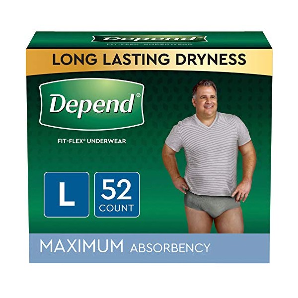 - Depend Fit-Flex Maximum Absorbency Incontinence Underwear with DryShield Technology, provides you all-day comfort, guaranteed*; Available in 3 sizes (S/M: 26-34" waist, L: 35-43" waist, XL: 44-64" waist)
