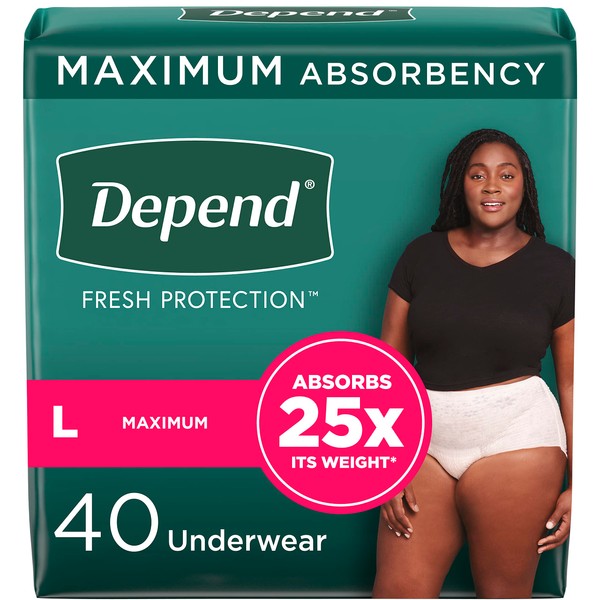 Depend FIT-Flex Incontinence Underwear for Women, Disposable, Maximum Absorbency, Large, 40 Count