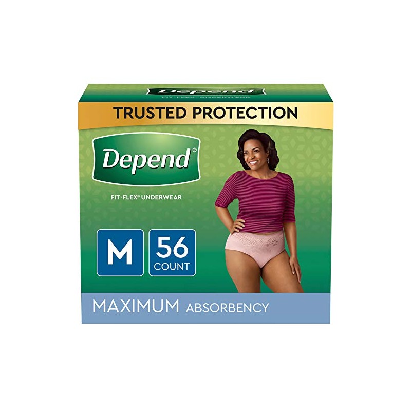 Depend FIT-FLEX Incontinence Underwear For Women, Disposable, Maximum Absorbency, Medium, Blush, 56 Count (2 Packs of 28) (Packaging May Vary)