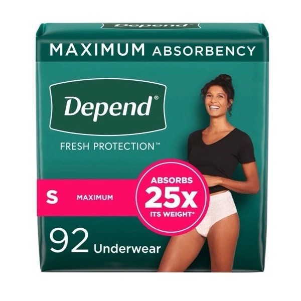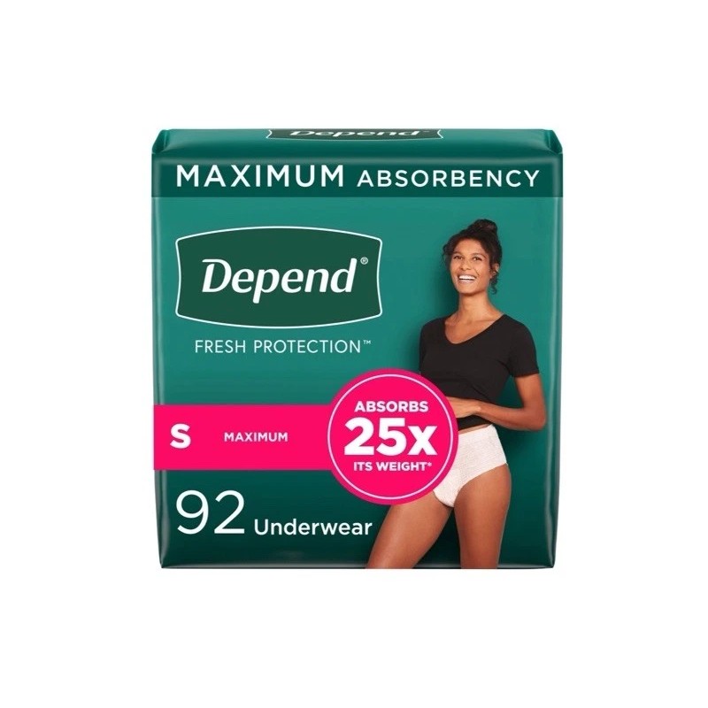 Depend Fresh Protection Adult Incontinence Underwear for Women, 92 Count, Small.
