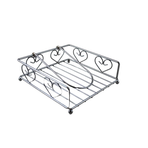 Dependable Industries Chrome Napkin Holder With Arm Classic Heart Design, Silver