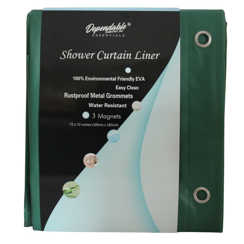 Dependable Industries inc. Essentials EVA Shower Curtain Liner - Water-Resistant, Rustproof Metal Grommets, 3 Magnets Bottom, Easy Clean, 72" x 72" Size (Hunter Green)