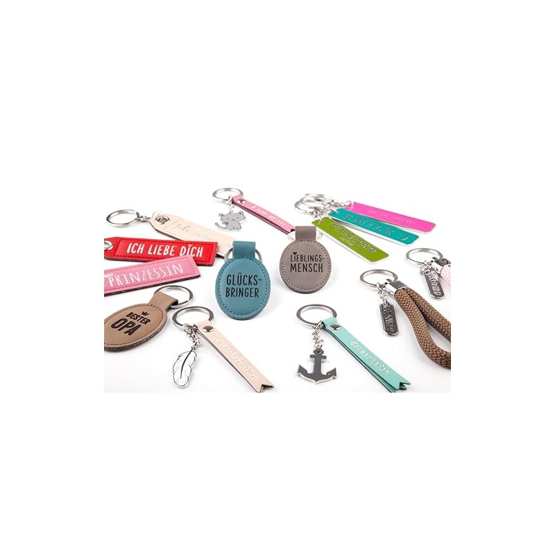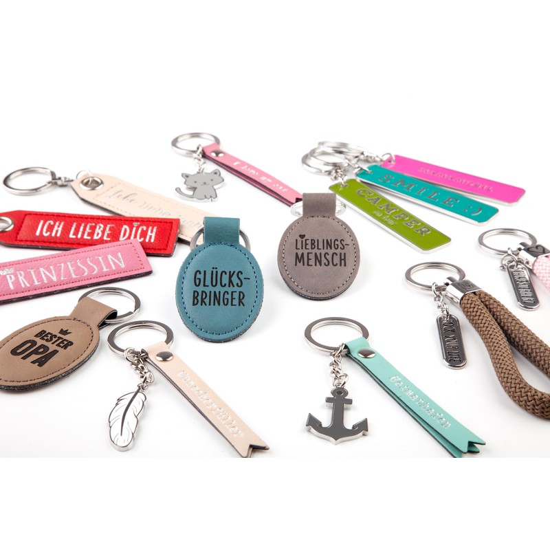 Depesche 11807-078 Keyring with Round Fabric Loop and Metal Pendant with Happ...