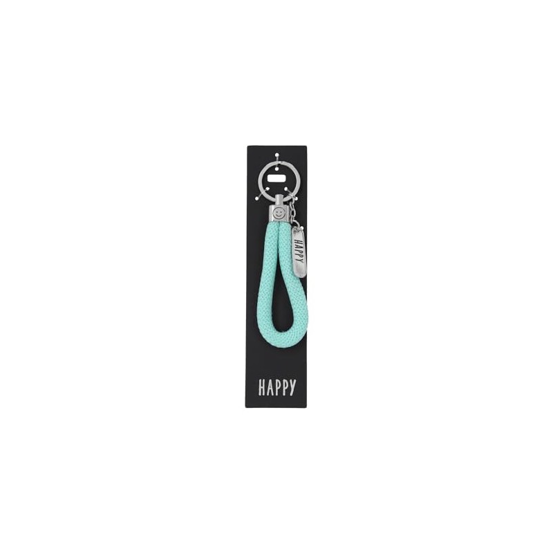 Depesche 11807-078 Keyring with Round Fabric Loop and Metal Pendant with Happy Lettering Turquoise