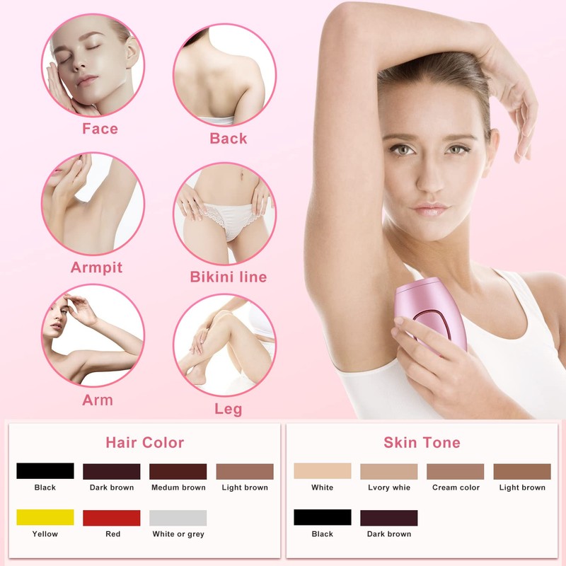 - Uso de Cuerpo Completo y Modos automático/manual: el depilador IPL cuenta con modo automático (flash continuo) para líneas de bikini, labio superior, barbilla, cara y axilas, y modo manual (destello único) para la espalda, pecho, estómago, brazos. , y piernas. NO apto para cejas.