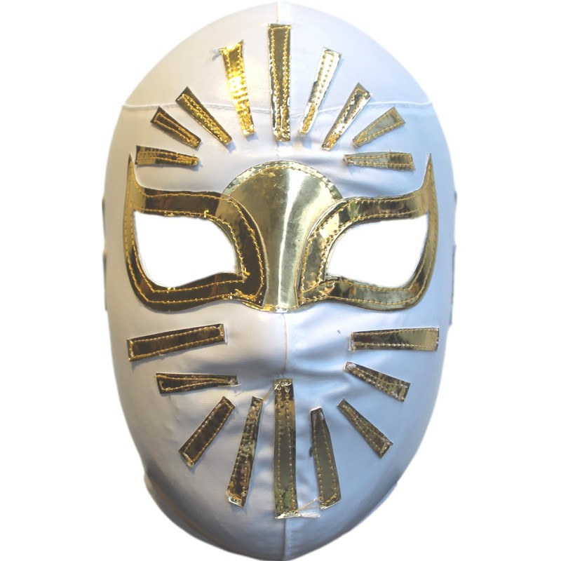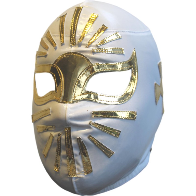 Deportes Martinez Lucha Libre Mexican Wrestling Pro-Fit Lycra Luchador Mask Adult Size (Mistico White Golden)