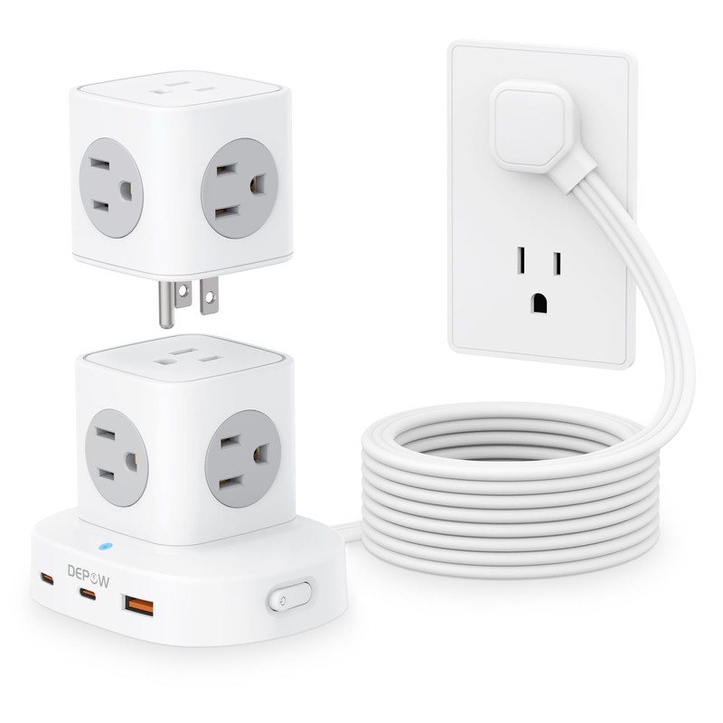 - 【12-in-1 Power Sation】This vertical power strip tower features a 2-in-1 removable power tower strip with 9 grounded outlets(1250W/10A), 2 USB-C ports, 1 USB-A port, the good solution for all your charging needs.