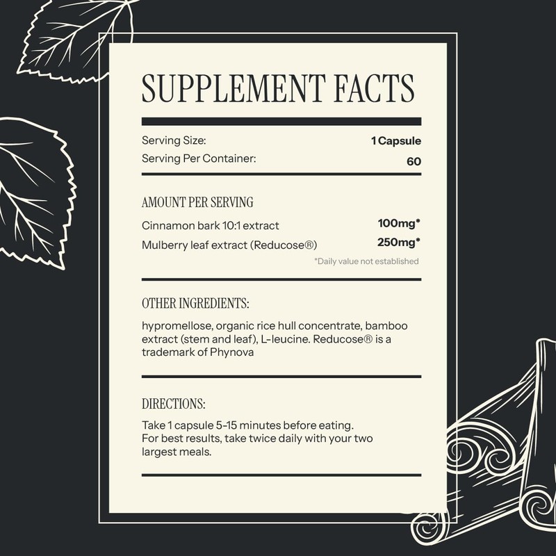 - Supports Post-Meal Wellness Features Reducose, a patented white mulberry leaf extract clinically studied for its role in moderating the digestive impact of carbohydrate-rich meals. Helps Maintain Balanced Energy & Satiety Crafted to support more steady post-meal energy levels and fullness by aiding normal carbohydrate metabolism. Formulated to Support Metabolic Wellness Developed with nutrition professionals to complement a modern diet and help reduce the metabolic burden of high-glycemic meals. Clean, Conscious Ingredients Made in the USA in a cGMP-certified facility. Vegan, non-GMO, gluten-free, with no synthetic fillers or artificial colors.