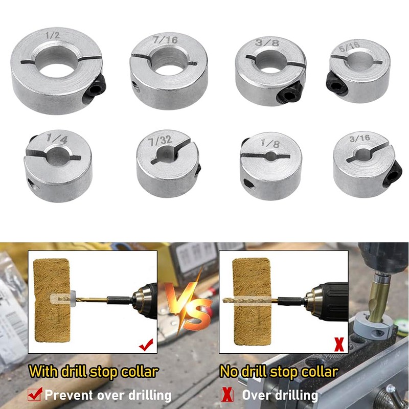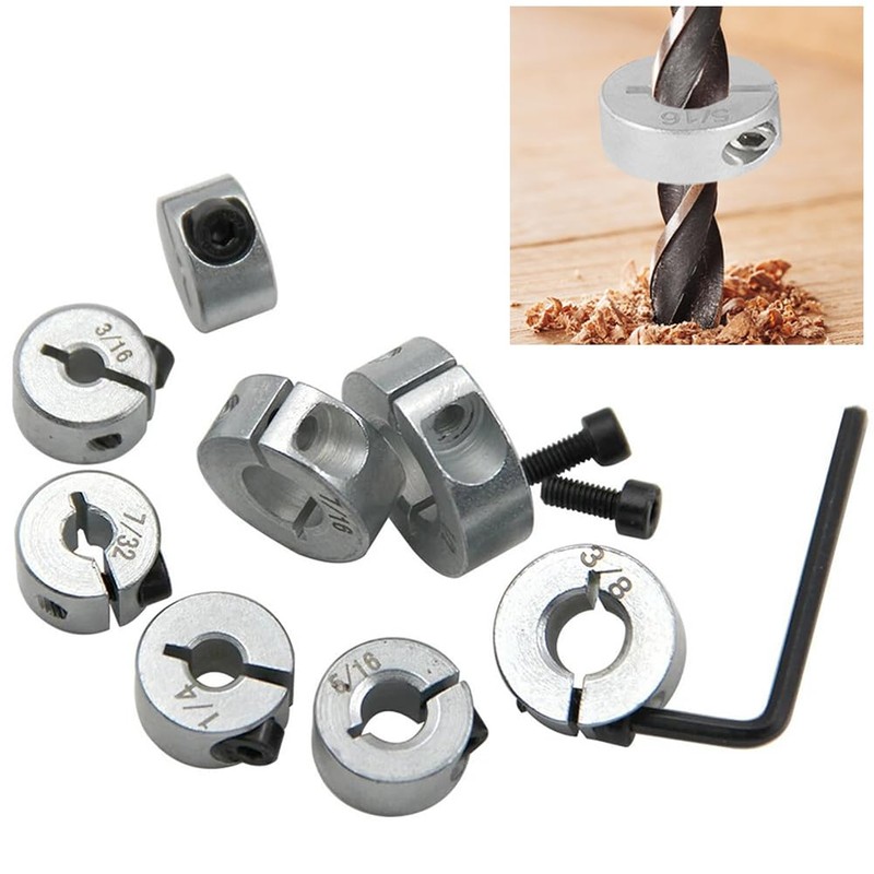 Depth Stop Drill Bit, Bestgle 8pcs Drill Depth Stop Collar Positioner Ring Kit Imperial Sizes 1/8" 3/16" 7/32" 1/4" 5/16" 3/8" 7/16" 1/2"
