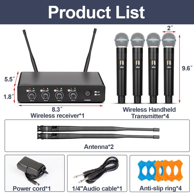 - This wireless receiver adopts a dual antenna design, which can stably receive 4 channel microphone signals, and can receive barrier free reception up to 160 feet away, with strong anti interference ability.