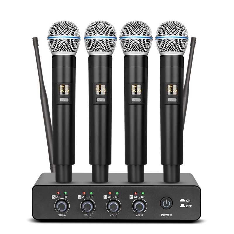 Depusheng R4 Karaoke Wireless Microphones Professional 4 Channels Handheld Wireless Microphone System Metal Dynamic Mic for Karaoke Singing, House Party, Church, Performance