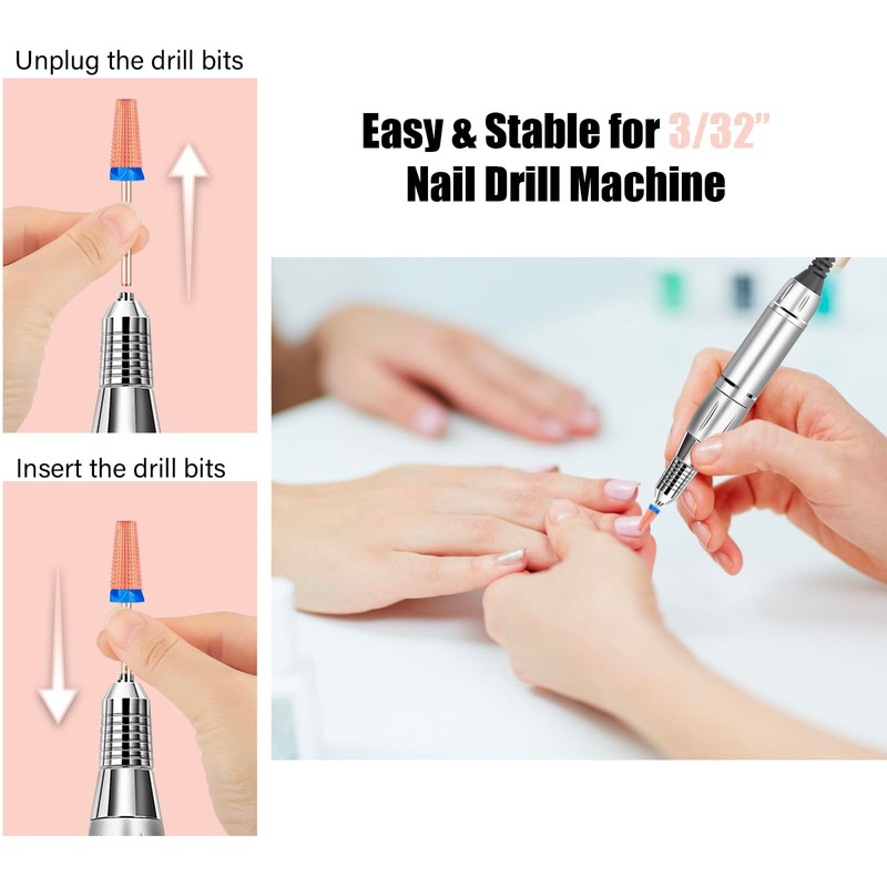• 【5 IN 1 Multiple Function Design】From top to the base of the carbide nail drill bit, the coarseness changes from Extra Fine to Fine, to Medium. The top teeth can reach nail edges to remove dead skin without cutting the skin around. Extra Fine grit is for the nail's middle areas, reaching tight areas to clean cuticles and sidewalls of the nail; Fine grit is for removing the surface gel, shape, and smooth nails; and Medium grit is for surface work(shortening, shape, and backfill).