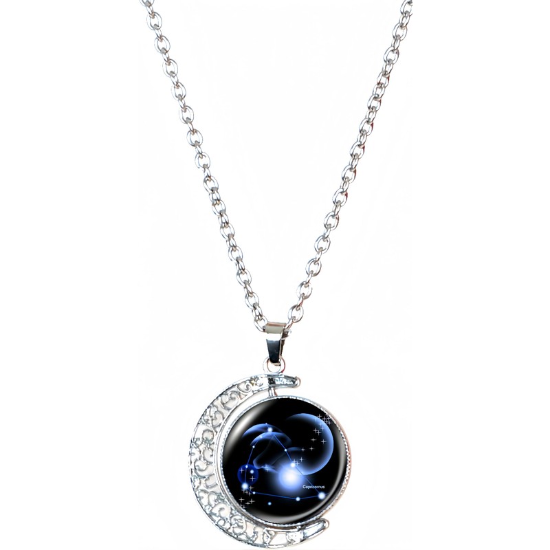 DEQIYIJI Zodiac Necklace Jewelry Birthday Gifts Astrology 12 Constellation Horoscope Sign Galaxy Crescent Half Moon Pendant Necklace Capricorn