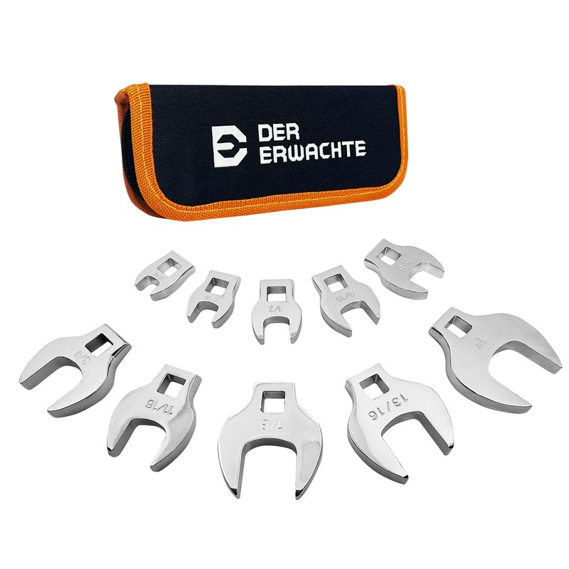 Der Erwachte 10-Piece 3/8" Drive Crowfoot Wrench Set, Open End Wrench Set, SAE, 3/8"-1", CR-V Steel, Tools for Mechanics, Access Fasteners in Tight Spaces, with Zipper Bag
