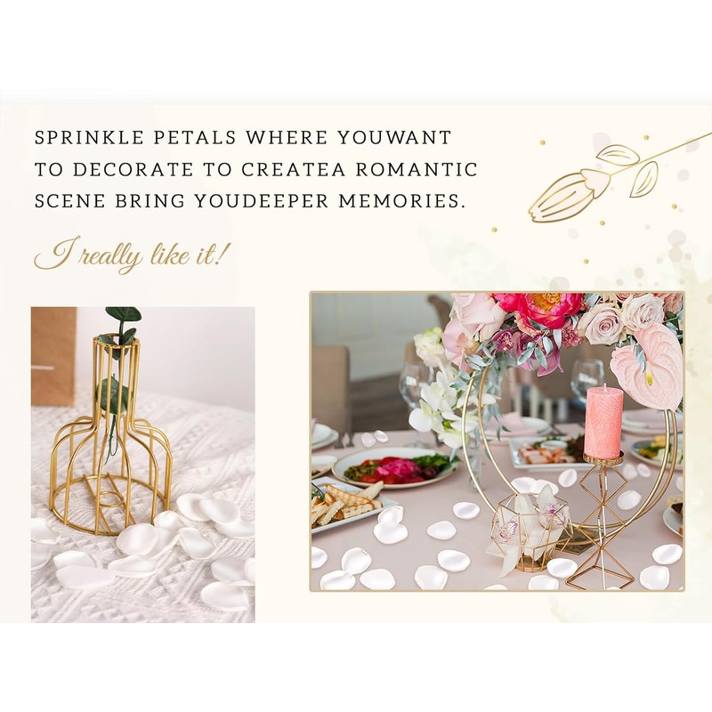 - Special Wedding Memory: Our satin rose petals are perfect for romantic weddings, bridal showers, proposal decoration, Valentine's Day. Use them to decorate the table centerpiece, wedding cake, aisle, flower girl basket