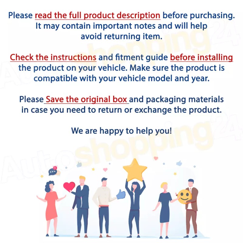 - All products returned are assumed to be in new and saleable condition unless the customer indicates otherwise at the time of submission. Re-boxing fees will be assessed on items received with damaged packaging. This fee may include shipping or other charges levied by the manufacturer. Any product returned in damaged, used or otherwise unsaleable condition may be returned to the customer or credit given at lower value, at the discretion of Autoshopping24.