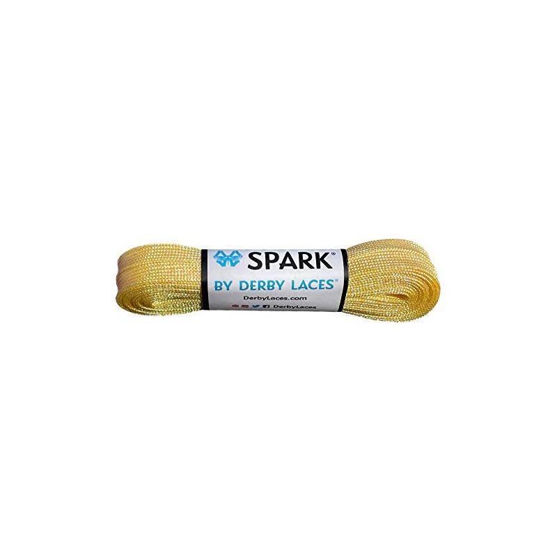 - PERFORMANCE METALLIC LACE: Sold as One Pair (Two Laces). Laces are flat and about 3/8 inch (9 mm) wide with hardened plastic tips. Multiple lengths available (pick your length). SPARK by Derby Laces create a natural friction when tightened to help them stay tied, tight, and where you want them.