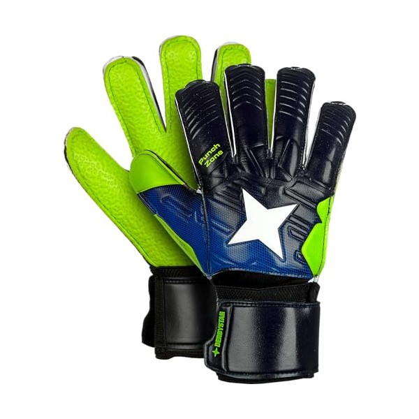 • Excellent training glove with finger protection technology. Cut: Flat Cut/Finger Protection Technology Adhesive foam: 3 mm Dura Grip, structured, green. Back of hand: soft EVA. Cushioning: good impact absorption. Fit: Optisize Fit System Closure: side slit with Velcro closure.
