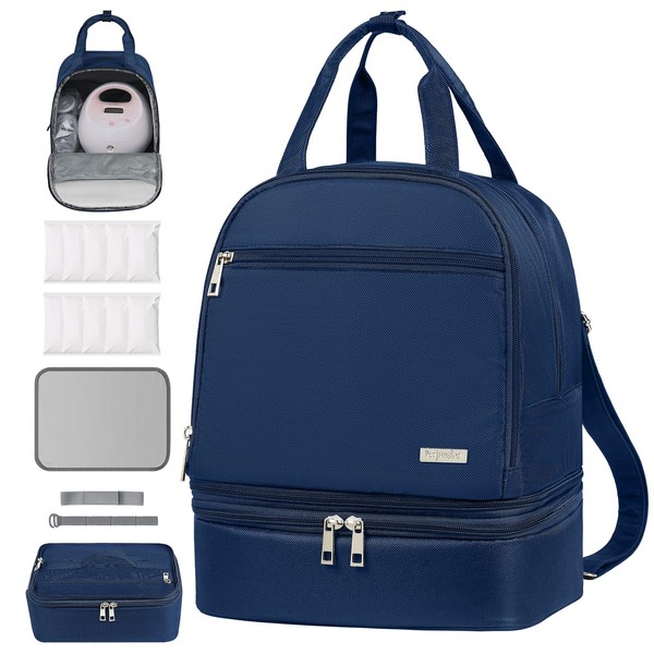 DERJUNSTAR Breast Pump Backpack, Breast Pump Bag for Mom (Blue)