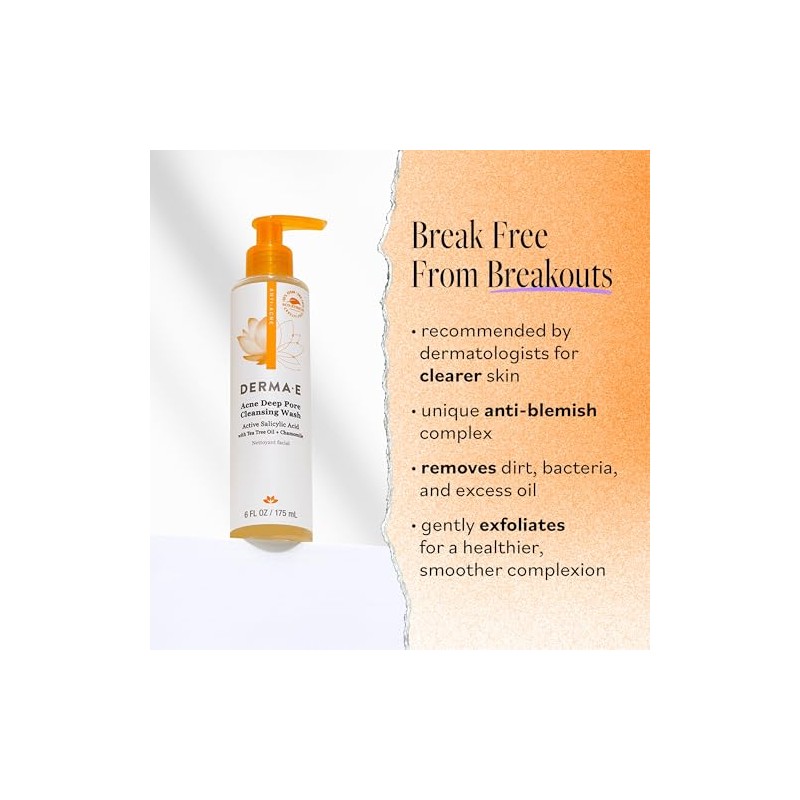 🌟 ⭐ DERMA E Acne Deep Pore Acne Cleansing Wash with Salicylic Acid, Tree Tree Oil, Chamomile, 6 oz ⭐ 🌟