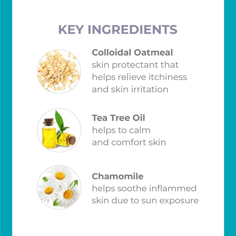 - That combined with tea tree and chamomiles for calming and soothing qualities to help relieve skin.