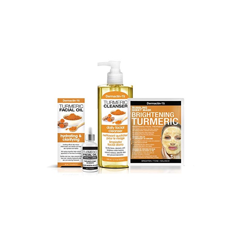 🌟 ⭐ Dermactin -TS Colección facial de cúrcuma: incluye limpiador facial de 5.7 oz, aceite facial de 1 oz y máscara de burbujas ⭐ 🌟