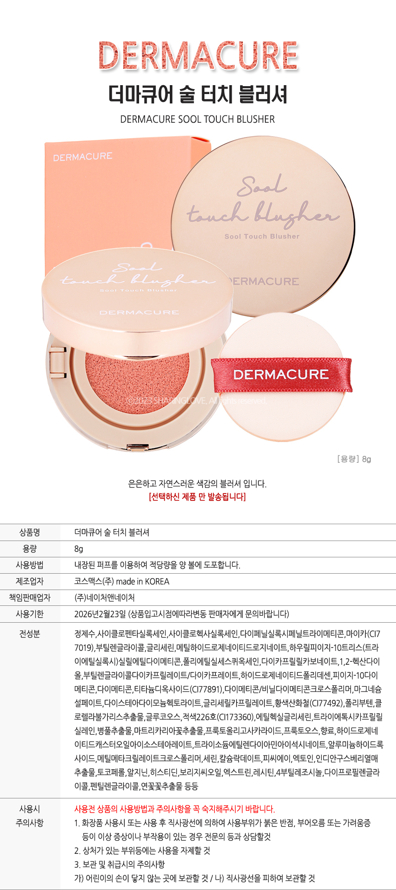 Dermacure Sul Touch Blusher 8g / 더마큐어 술 터치 블러셔 8g