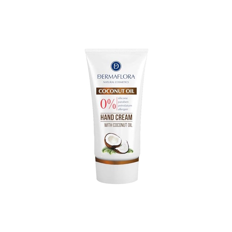 Dermaflora Coconut Oil Hand Cream – 50ml Hydrating & Antioxidant-Rich Daily Moisturizer for Sensitive Skin Quick Absorption, Non-Greasy Formula with Soothing Aloe & Beeswax