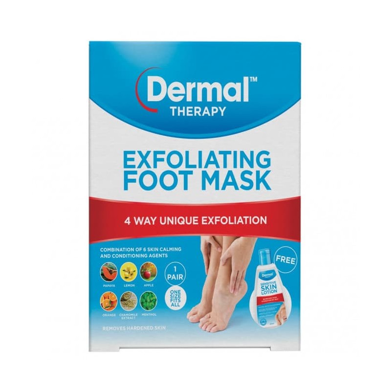 Dermal Therapy Exfoliating Foot Mask is an easy to use foot sock, formulated with a special exfoliation technology using both urea and acids for superior efficacy. It contains a unique combination of exfoliating agents that enable smart penetration resulting in visibly smooth feet within 2 weeks. Also containing 6 skin conditioning agents that calm freshly exfoliated skin.