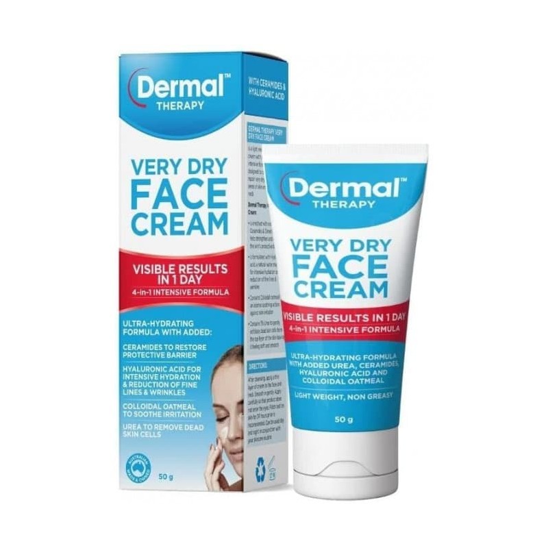 DERMAL THERAPY VERY DRY FACE CREAM is a light weight, non greasy cream with a unique 4-in-1 intensive formula specifically designed to deeply nourish and repair very dry and sensitive areas of skin on the face and neck.